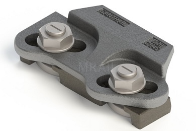 Gantrail1220/21焊接式可调压板:具有自锁功能,适用重轨安装。每套压板由一个压板夹(带硫化橡胶鼻子)通过硫化橡皮鼻子作用一个向下的力固定钢轨、一个压板底座、两个特制螺栓、两个特殊螺母等部件组成,通过将压板底座焊接到钢支承面上固定钢轨,压板侧向载荷300KN,可以侧向调整21mm;常用型号GANTRAIL1220/21/38、GANTRAIL1220/21/45;